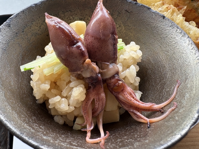 ホタルイカを炊き込みごはんに加えると、独特の旨みがごはん全体に広がり、滋味深い味わいになります。生姜を効かせると、体を温めながら消化も助けてくれる一品になります。