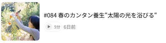 ▼春になると、何だか不調が出やすいという人へ。春のカンタンにできる養生法については、こちらの音声でも詳しくお話しています(おすすめ/約4分)。